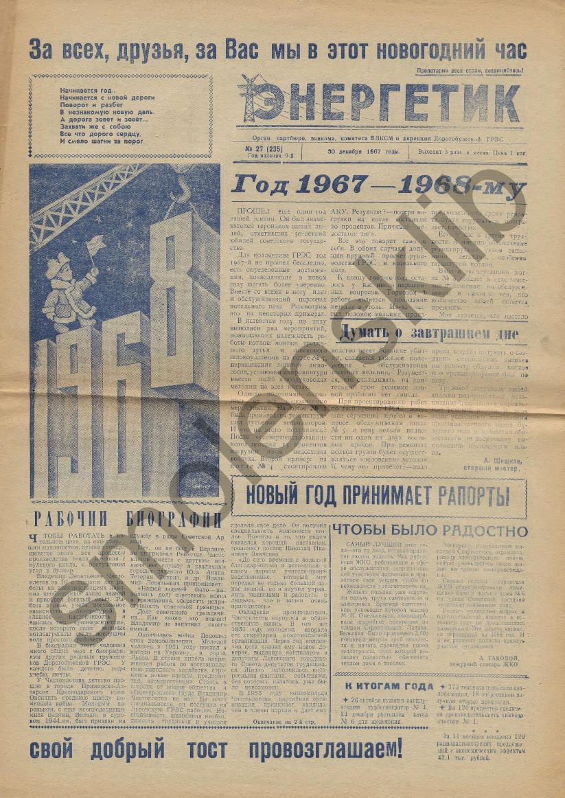 Энергетик: Орган партбюро, завкома, комитета ВЛКСМ и дирекции Дорогобужской ГРЭС. — Сафоново: Сафоновская тип., 1958-____. № 27.