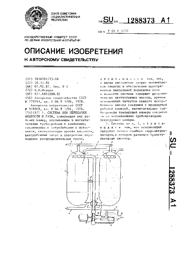Система для перекачки жидкости и газа / Шевцов В. Ф. // Описания изобретений (ретрофонд) / Комитет по патентам и товарным знакам России. – М., 2003. – 1987, № 1. — (Патенты России). — Загл. с титул. экрана. — Поисковая система: MIMOSA GTI. — Систем. требования: Acrobat Reader. — Режим доступа: ftp://smolensklib.ru/bd/patent_ru/pt1288373.pdf. — <URL:ftp://smolensklib.ru/bd/patent_ru/pt1288373.pdf>.