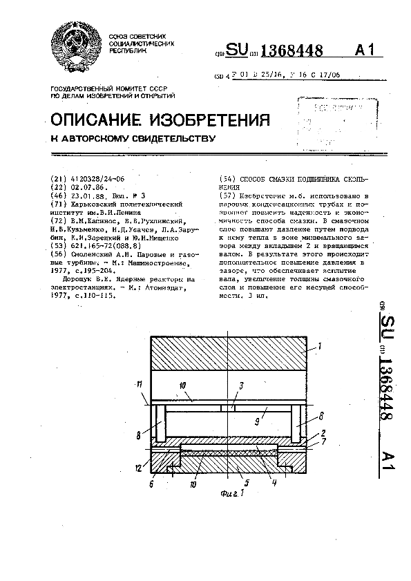 Способ смазки подшипника скольжения / Капинос В. М., Рухлинский В. В., Кузьменко И. В. [и др.]; заявитель: Харьковский политехнический институт им. В. И. Ленина // Описания изобретений (ретрофонд) / Комитет по патентам и товарным знакам России. — М., 1994-____. — (Патенты России). – 1988, № 1. — Загл. с титул. экрана. — Поисковая система: ИПС MIMOSA GTI. — Систем. требования: Acrobat Reader. — Режим доступа: ftp://smolensklib.ru/bd/patent_ru/pt1368448.pdf. — <URL:ftp://smolensklib.ru/bd/patent_ru/pt1368448.pdf>.