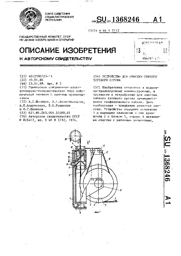 Устройство для очистки гибкого тягового органа / Шагинян А. С., Асан-Джалалов А. Г., Андросенко А. П. [и др.]; заявитель: Гомельское специальное конструкторско-технологическое бюро сейсмической техники с опытным производством // Описания изобретений (ретрофонд) / Комитет по патентам и товарным знакам России. — М., 1994-____. — (Патенты России). – 1988, № 1. — Загл. с титул. экрана. — Поисковая система: ИПС MIMOSA GTI. — Систем. требования: Acrobat Reader. — Режим доступа: ftp://smolensklib.ru/bd/patent_ru/pt1368246.pdf. — <URL:ftp://smolensklib.ru/bd/patent_ru/pt1368246.pdf>.