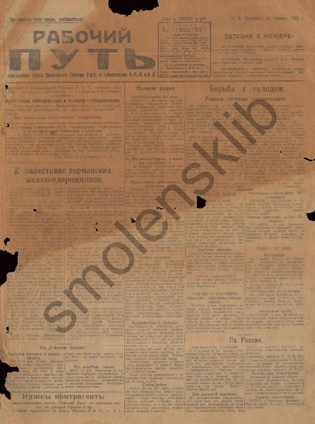 Рабочий путь / Орган Смоленского Губернского Комитета РКП(б) и Губисполкома Советов РК и КД. — Смоленск: 2-я тип. Совнархоза, 1920-____. № 47.