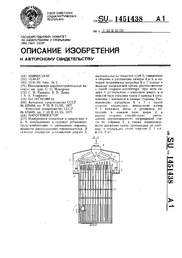 Утилизатор теплоты / Худенко А. А., Моисеев В. И., Пресич Г. А., Семенюк Л. Г.; заявитель: Николаевский кораблестроительный институт им. адм. С. О. Макарова // Описания изобретений (ретрофонд) / Комитет по патентам и товарным знакам России. – М., 2003. – 1989, № 1. — (Патенты России). — Загл. с титул. экрана. — Поисковая система: ИПС MIMOSA GTI. — Систем. требования: Acrobat Reader. — Режим доступа: ftp://smolensklib.ru/bd/patent_ru/pt1451438.pdf. — <URL:ftp://smolensklib.ru/bd/patent_ru/pt1451438.pdf>.