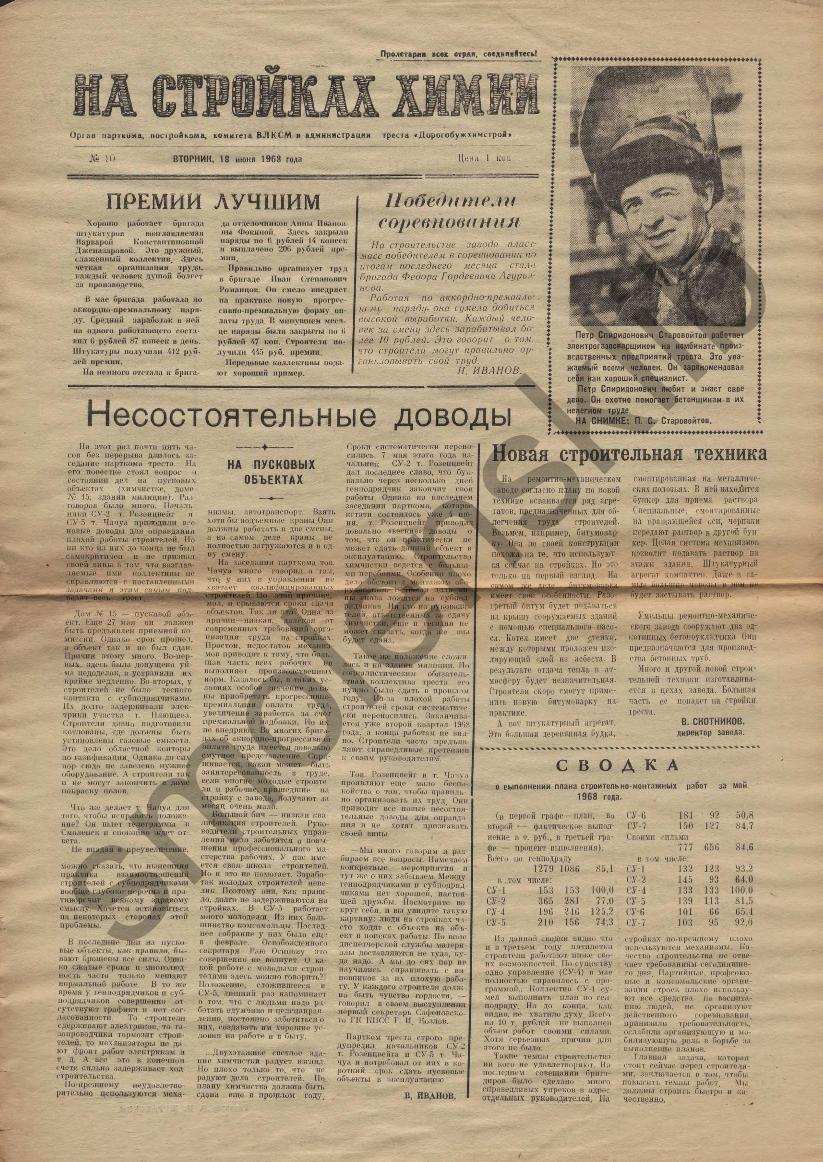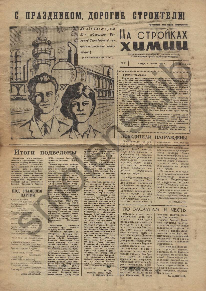 На стройках химии: Орган парткома, постройкома, комитета ВЛКСМ и администрации треста "Дорогобужхимстрой". — Сафоново: Сафоновская тип., 1967-____. № 18.