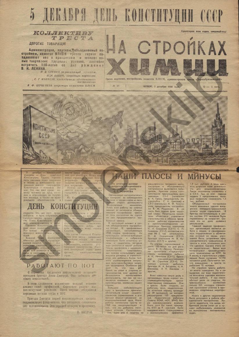 На стройках химии: Орган парткома, постройкома, комитета ВЛКСМ и администрации треста "Дорогобужхимстрой". — Сафоново: Сафоновская тип., 1967-____. № 20.