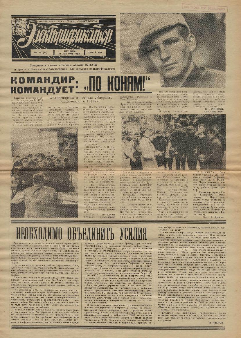 Электрификатор: Спецвыпуск газеты "Смена" - и треста "Запсельэлектросетьстрой" для сельских электрификаторов. — Смоленск: Тип. им. Смирнова, 1965-____. № 15.