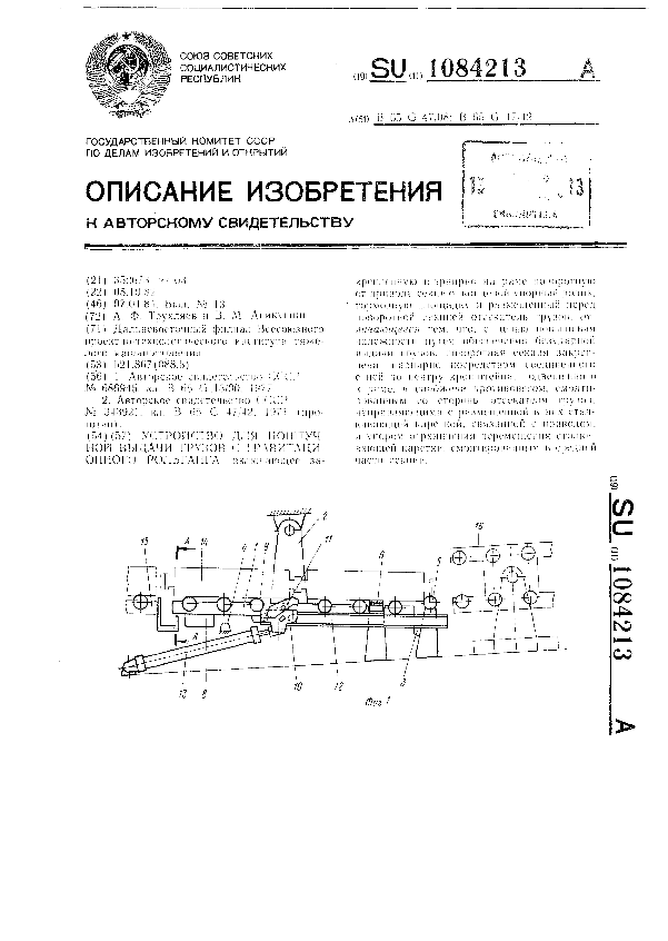 Устройство для поштучной выдачи грузов с гравитационного рольганга / Трухляев А. Ф., Аникушин В. М.; заявитель : Дальневосточный филиал Всесоюзного проектно-технологического института тяжелого машиностроения // Описания изобретений (ретрофонд) / Комитет по патентам и товарным знакам России. – М. — (Патенты России)., 2003. – 1984, № 1. — Загл. с титул. экрана. — Поисковая система: ИПС MIMOSA GTI. — Систем. требования: Acrobat Reader. — Режим доступа: ftp://smolensklib.ru/bd/patent_ru/pt1084213.pdf. — <URL:ftp://smolensklib.ru/bd/patent_ru/pt1084213.pdf>.