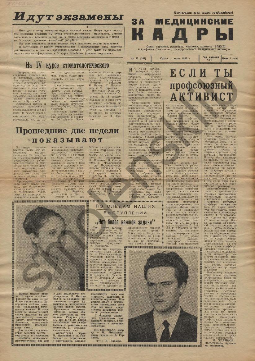 За медицинские кадры: Орган парткома, ректората, месткома, комитета ВЛКСМ и профкома Смоленского государственного медицинского института. — Смоленск: Тип. им. Смирнова, 1957-____. № 22.