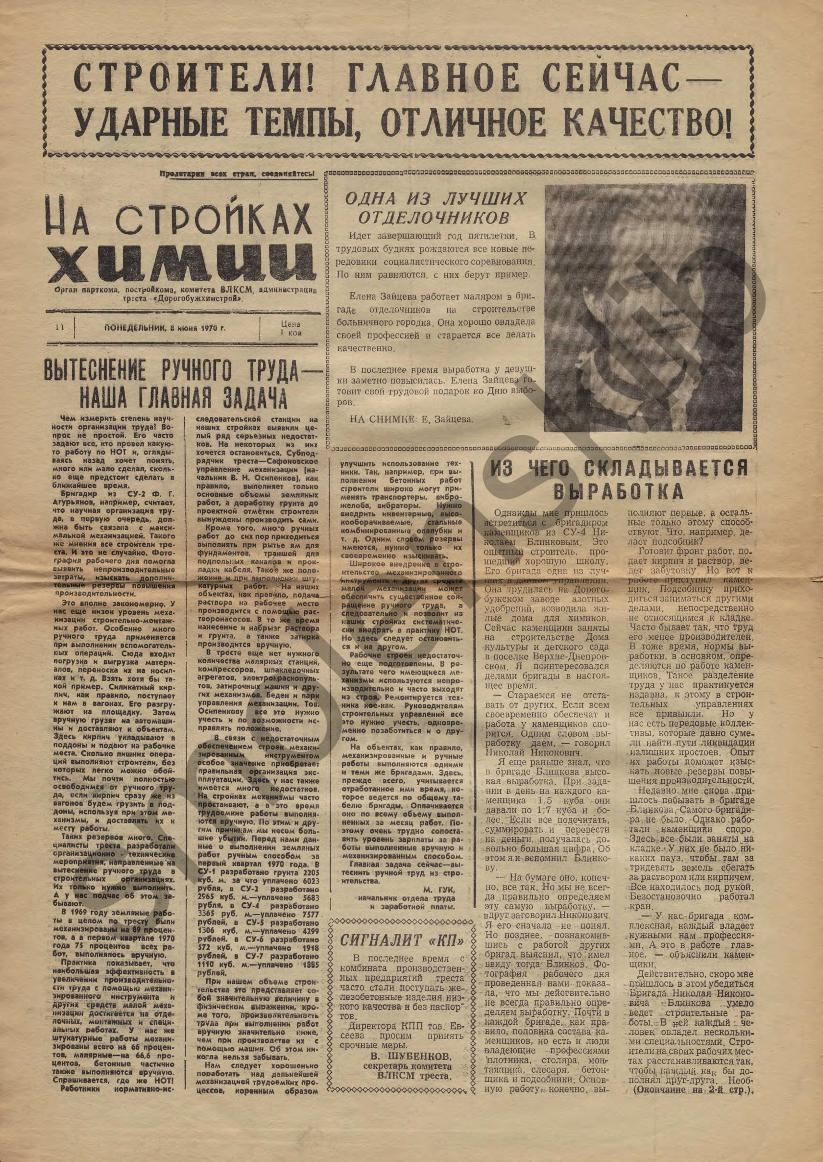 На стройках химии: Орган парткома, постройкома, комитета ВЛКСМ и администрации треста "Дорогобужхимстрой". — Сафоново: Сафоновская тип. Смолоблуправ., 1967-____. № 14.