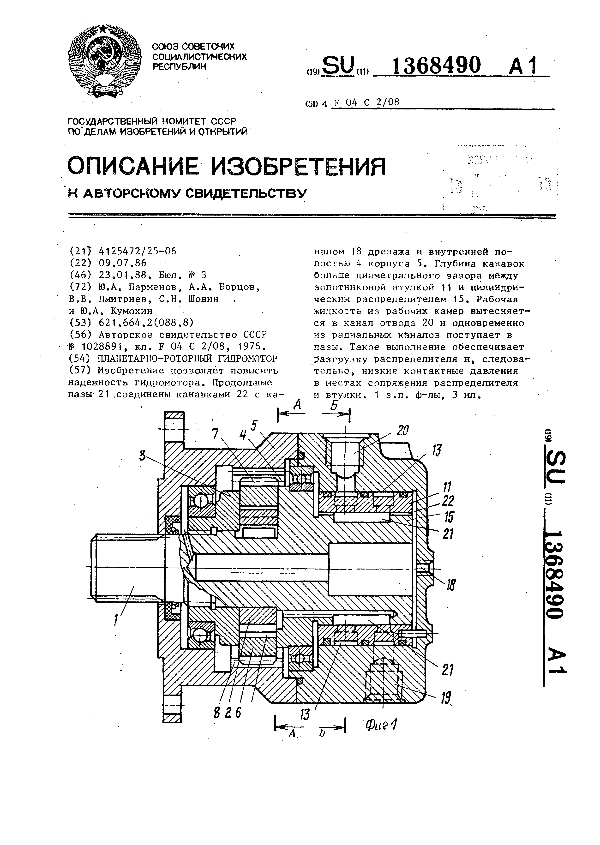 Планетарно-роторный гидромотор / Парменов Ю. А., Борцов А. А., Дмитриев В. В. [и др.] // Описания изобретений (ретрофонд) / Комитет по патентам и товарным знакам России. — М., 1994-____. — (Патенты России). – 1988, № 1. — Загл. с титул. экрана. — Систем. требования: Acrobat Reader. — Режим доступа: ftp://smolensklib.ru/bd/patent_ru/pt1368490.pdf. — <URL:ftp://smolensklib.ru/bd/patent_ru/pt1368490.pdf>.