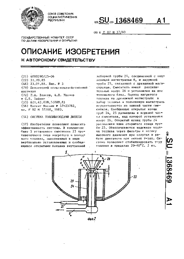 Система топливоподачи дизеля / Власов П. А., Уханов А. П., Байкин С. В.; заявитель: Пензенский сельскохозяйственный институт // Описания изобретений (ретрофонд) / Комитет по патентам и товарным знакам России. — М., 1994-____. — (Патенты России). – 1988, № 1. — Загл. с титул. экрана. — Поисковая система: ИПС MIMOSA GTI. — Систем. требования: Acrobat Reader. — Режим доступа: ftp://smolensklib.ru/bd/patent_ru/pt1368469.pdf. — <URL:ftp://smolensklib.ru/bd/patent_ru/pt1368469.pdf>.