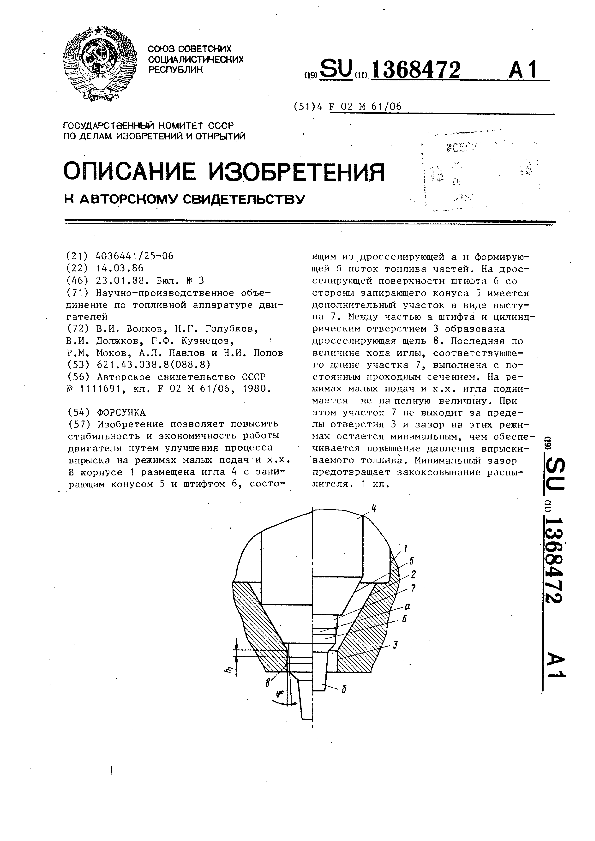 Форсунка / Волков В. И., Голубков И. Г., Должков В. И. [и др.]; заявитель: Научно-производственное объединение по топливной аппаратуре двигателей // Описания изобретений (ретрофонд) / Комитет по патентам и товарным знакам России. — М., 1994-____. — (Патенты России). – 1988, № 1. — Загл. с титул. экрана. — Поисковая система: ИПС MIMOSA GTI. — Систем. требования: Acrobat Reader. — Режим доступа: ftp://smolensklib.ru/bd/patent_ru/pt1368472.pdf. — <URL:ftp://smolensklib.ru/bd/patent_ru/pt1368472.pdf>.