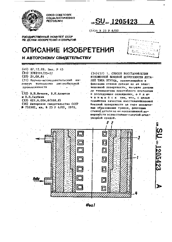 Способ восстановления изношенной боковой поверхности деталей типа втулки / Нечаев В. П., Ахматов В. И., Таубкин Б. Л.; заявитель: Научно-исследовательский институт технологии автомобильной промышленности // Описания изобретений (ретрофонд) / Комитет по патентам и товарным знакам России. – М., 2003. – 1986, № 1. — (Патенты России). — Загл. с титул. экрана. — Поисковая система: ИПС MIMOSA GTI. — Систем. требования: Acrobat Reader. — Режим доступа: ftp://smolensklib.ru/bd/patent_ru/pt1205423.pdf. — <URL:ftp://smolensklib.ru/bd/patent_ru/pt1205423.pdf>.