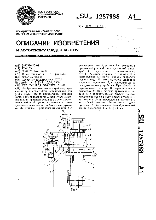 Станок для обрезки труб / Эльянов Л. М., Гринвальд В. А. // Описания изобретений (ретрофонд) / Комитет по патентам и товарным знакам России. – М., 2003. – 1987, № 1. — (Патенты России). — Загл. с титул. экрана. — Поисковая система: MIMOSA GTI. — Систем. требования: Acrobat Reader. — Режим доступа: ftp://smolensklib.ru/bd/patent_ru/pt1287988.pdf. — <URL:ftp://smolensklib.ru/bd/patent_ru/pt1287988.pdf>.