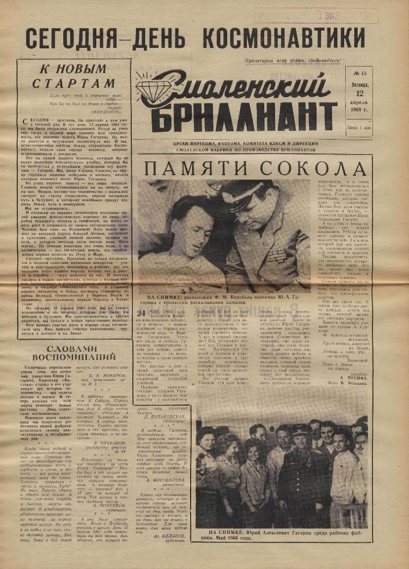 Смоленский бриллиант: Орган парткома, фабкома, комитета ВЛКСМ и дирекции Смоленской фабрики по производству бриллиантов. — Смоленск: Смолгортип., 1968-____. № 15.