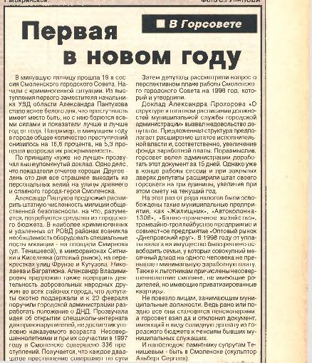 Сойко, О. Первая в новом году / О. Сойко // Всё!, 1998. – 30 янв. — (В горсовете). — <URL:ftp://smolensklib.ru/bd/tenish/000005457.pdf>.