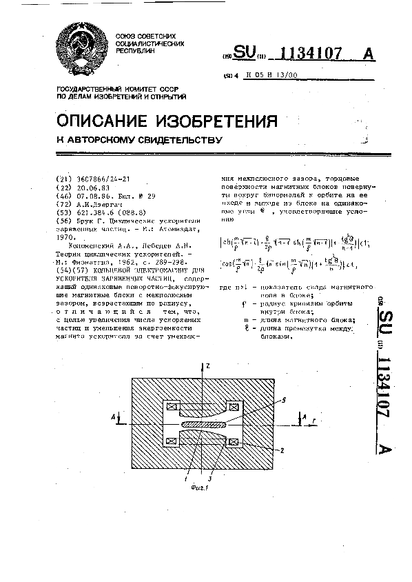 Кольцевой электромагнит для ускорителя заряженных частиц / Дзергач А.И. // Описания изобретений (ретрофонд) / Комитет по патентам и товарным знакам России. – М., 2003. – 1985, № 1 — 1 файл: 231 Кб: ил. — (Патенты России). — Загл. с титул. экрана. — Поисковая система: MIMOSA GTI. — Систем. требования: Acrobat Reader. — Режим доступа: ftp://smolensklib.ru/bd/patent_ru/pt1134107.pdf. — <URL:ftp://smolensklib.ru/bd/patent_ru/pt1134107.pdf>.