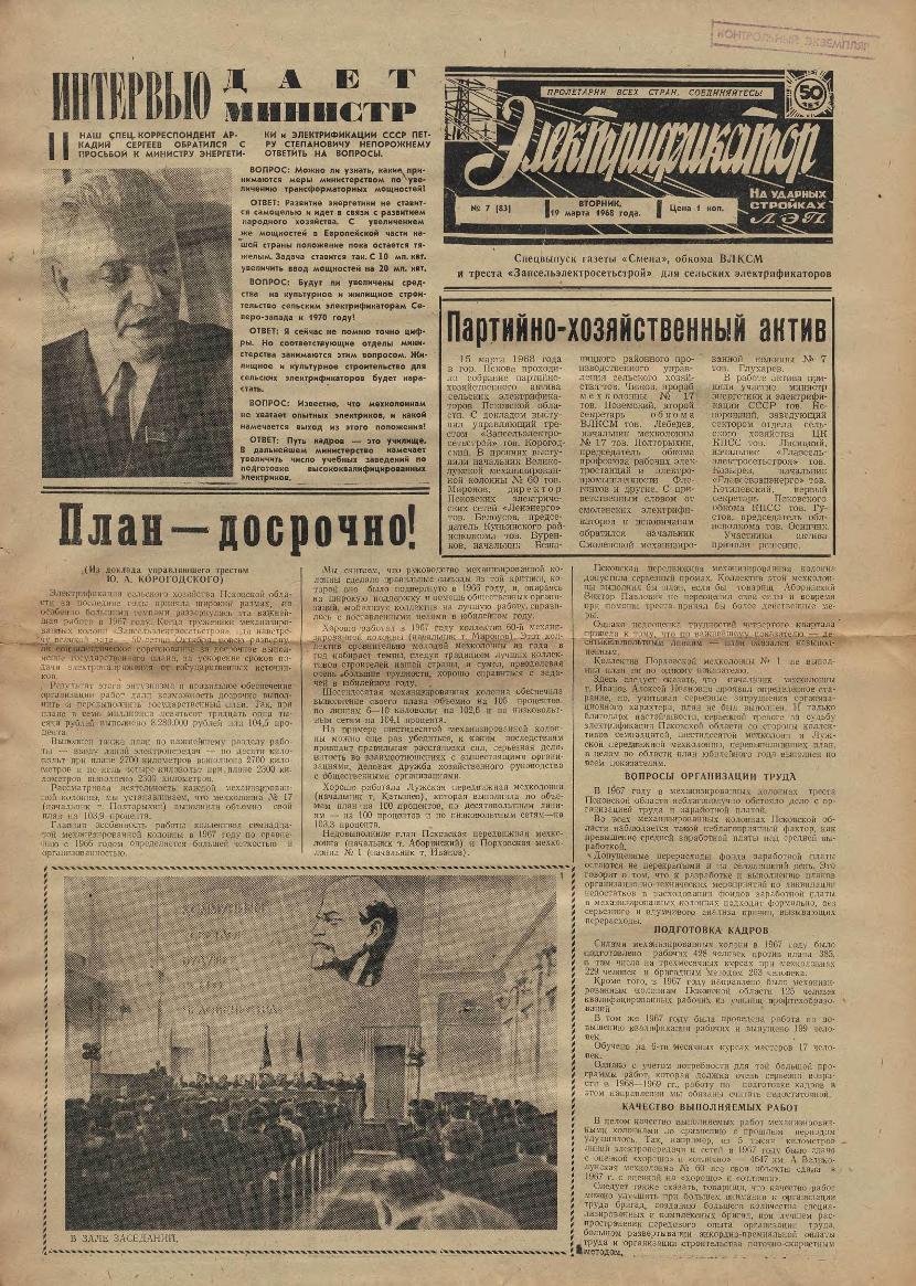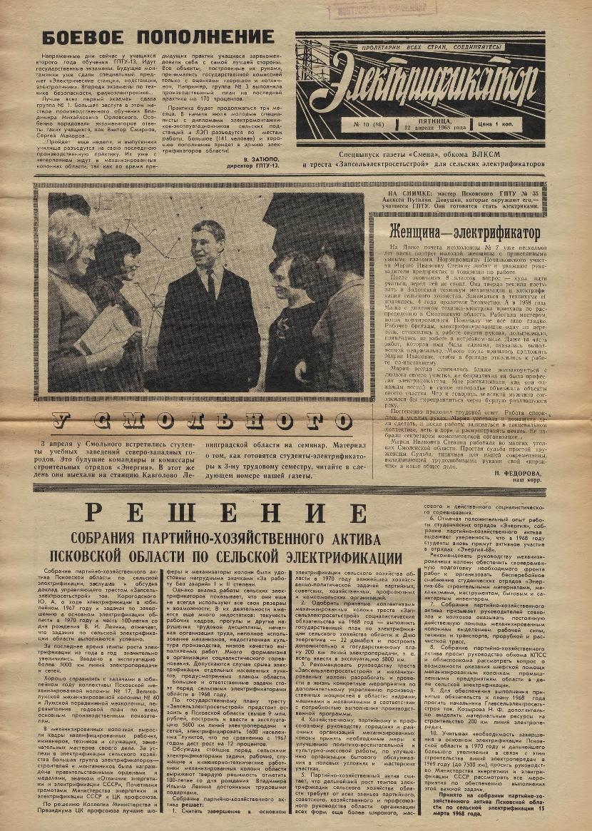 Электрификатор: Спецвыпуск газеты "Смена" - и треста "Запсельэлектросетьстрой" для сельских электрификаторов. — Смоленск: Тип. им. Смирнова, 1965-____. № 10.