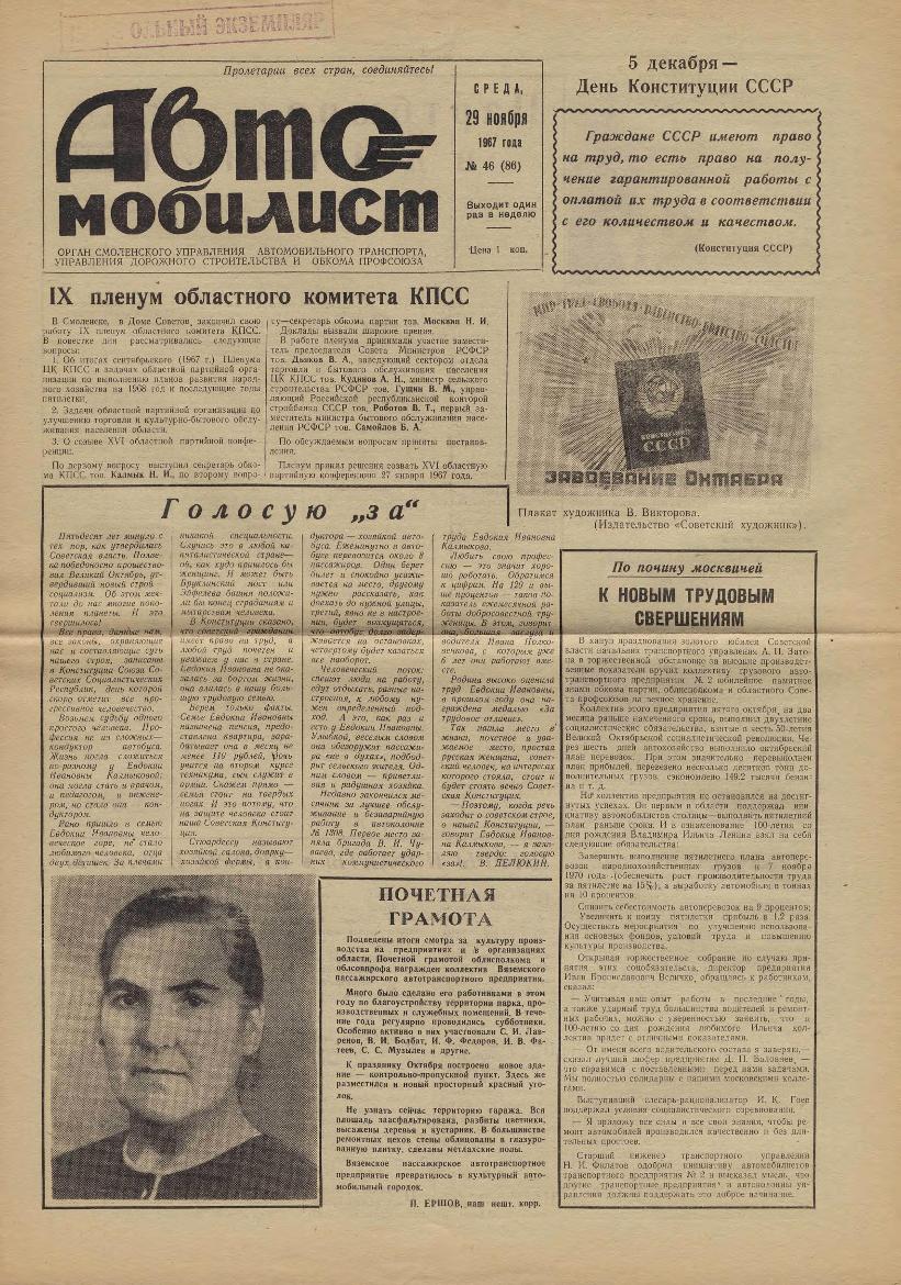 | 337 | Автомобилист: Орган Смоленского управления автомобильного транспорта, управления дорожного строительства и Обкома профсоюза. — Смоленск: Смолгортип., 1966-____. № 46.