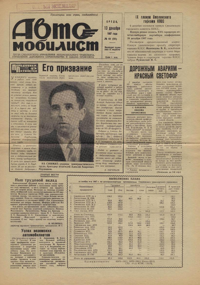 | 336 | Автомобилист: Орган Смоленского управления автомобильного транспорта, управления дорожного строительства и Обкома профсоюза. — Смоленск: Смолгортип., 1966-____. № 48.