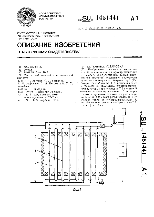 | 334 | Котельная установка / Антонов А. Я., Беспалов С. Г., Марченко Е. М. [и др.]; заявитель: Всесоюзный заочный политехнический институт // Описания изобретений (ретрофонд) / Комитет по патентам и товарным знакам России. – М., 2003. – 1989, № 1. — (Патенты России). — Загл. с титул. экрана. — Поисковая система: ИПС MIMOSA GTI. — Систем. требования: Acrobat Reader. — Режим доступа: ftp://smolensklib.ru/bd/patent_ru/pt1451441.pdf. — <URL:ftp://smolensklib.ru/bd/patent_ru/pt1451441.pdf>. | 10/21/2025 |