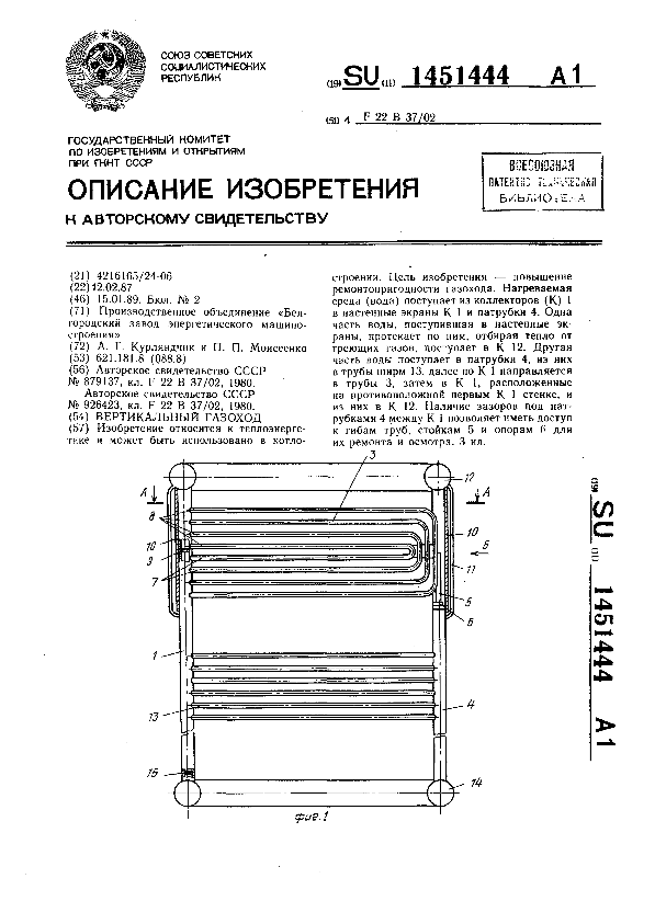| 331 | Вертикальный газоход / Курляндчик А. Г., Моисеенко П. П.; заявитель: Производственное объединение «Белгородский завод энергетического машиностроения» // Описания изобретений (ретрофонд) / Комитет по патентам и товарным знакам России. – М., 2003. – 1989, № 1. — (Патенты России). — Загл. с титул. экрана. — Поисковая система: ИПС MIMOSA GTI. — Систем. требования: Acrobat Reader. — Режим доступа: ftp://smolensklib.ru/bd/patent_ru/pt1451444.pdf. — <URL:ftp://smolensklib.ru/bd/patent_ru/pt1451444.pdf>. | 10/21/2025 |