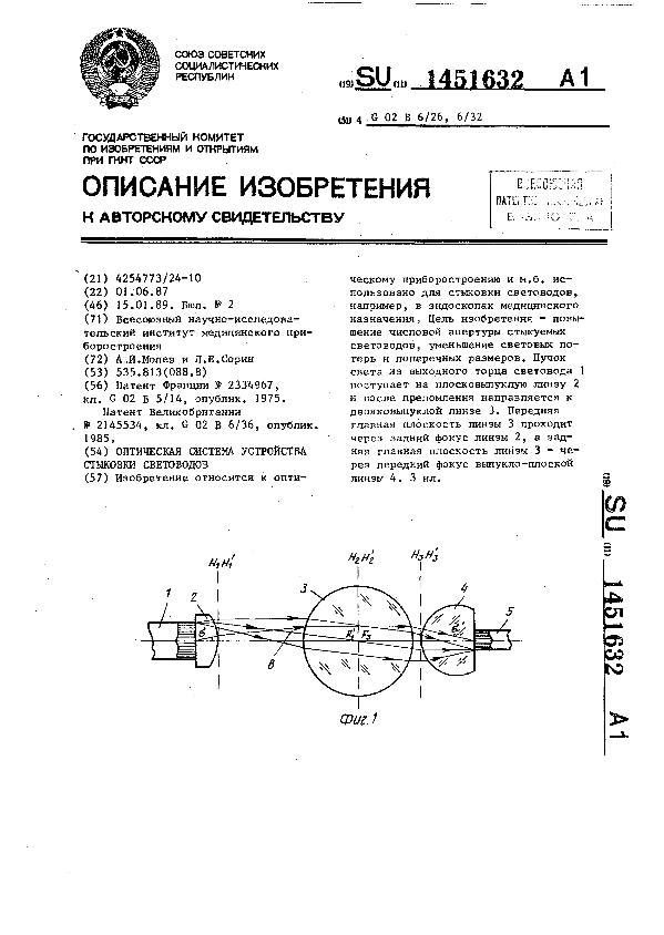 Оптическая система устройства стыковки световодов / Молев А. И., Сорин Л. Е.; заявитель: Всесоюзный научно-исследовательский институт медицинского приборостроения // Описания изобретений (ретрофонд) / Комитет по патентам и товарным знакам России. – М., 2003. – 1989, № 1. — (Патенты России). — Загл. с титул. экрана. — Поисковая система: ИПС MIMOSA GTI. — Систем. требования: Acrobat Reader. — Режим доступа: ftp://smolensklib.ru/bd/patent_ru/pt1451632.pdf. — <URL:ftp://smolensklib.ru/bd/patent_ru/pt1451632.pdf>.