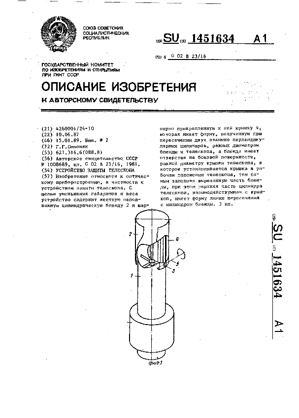 Устройство защиты телескопа / Симонян Г. Г. // Описания изобретений (ретрофонд) / Комитет по патентам и товарным знакам России. – М., 2003. – 1989, № 1. — (Патенты России). — Загл. с титул. экрана. — Поисковая система: ИПС MIMOSA GTI. — Систем. требования: Acrobat Reader. — Режим доступа: ftp://smolensklib.ru/bd/patent_ru/pt1451634.pdf. — <URL:ftp://smolensklib.ru/bd/patent_ru/pt1451634.pdf>.