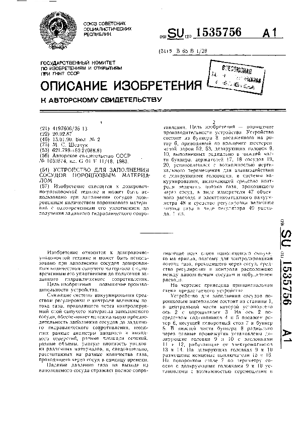 Устройство для заполнения сосудов порошковым материалом / Шевчук М. С. // Описания изобретений (ретрофонд) / Комитет по патентам и товарным знакам России. – М., 2003. – 1990, № 1. — (Патенты России). — Загл. с титул. экрана. — Поисковая система: MIMOSA GTI. — Систем. требования: Acrobat Reader. — Режим доступа: ftp://smolensklib.ru/bd/patent_ru/pt1535756.pdf. — <URL:ftp://smolensklib.ru/bd/patent_ru/pt1535756.pdf>.