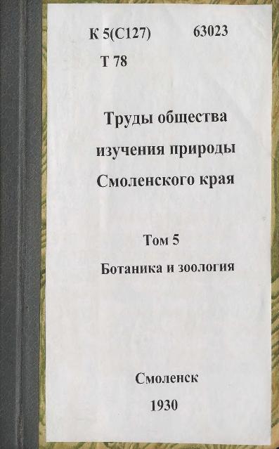 Т. 5 : Ботаника и зоология, 1930. (Смоленск: СОУНБ им. А. Т. Твардовского, 2025) — 1 файл (25,9 Мб). — Загл. с титул. экрана. — Цифровая копия печ. публикации 1930 г. — Доступ по паролю из сети Интернет (чтение). — Электрон. версия печ. публикации. — Систем. требования: Интернет-браузер; Acrobat Reader. — Режим доступа: ftp://smolensklib.ru/bd/books/000004174.pdf. — <URL:ftp://smolensklib.ru/bd/books/000004174.pdf>.