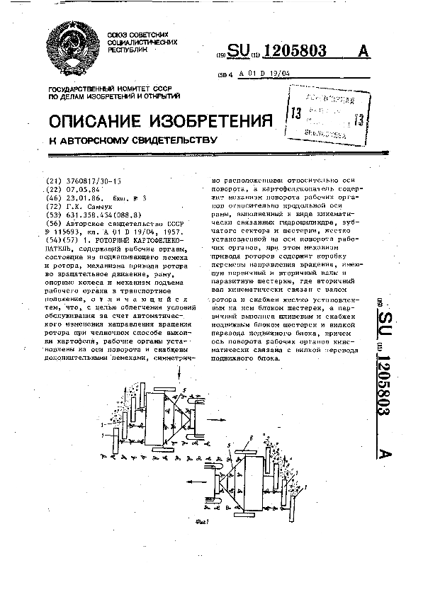 Роторный картофелекопатель / Самчук Г. К. // Описания изобретений (ретрофонд) / Комитет по патентам и товарным знакам России. – М., 2003. – 1986, № 1. — (Патенты России). — Загл. с титул. экрана. — Поисковая система: ИПС MIMOSA GTI. — Систем. требования: Acrobat Reader. — Режим доступа: ftp://smolensklib.ru/bd/patent_ru/pt1205803.pdf. — <URL:ftp://smolensklib.ru/bd/patent_ru/pt1205803.pdf>.