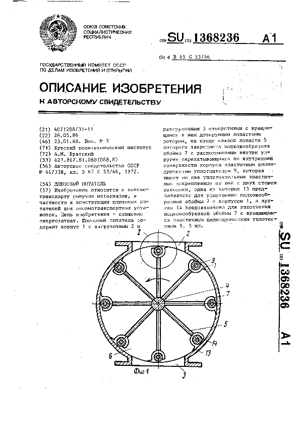 Шлюзовый питатель / Вратский А. М.; заявитель: Курский политехнический институт // Описания изобретений (ретрофонд) / Комитет по патентам и товарным знакам России. — М., 1994-____. — (Патенты России). – 1988, № 1. — Загл. с титул. экрана. — Поисковая система: ИПС MIMOSA GTI. — Систем. требования: Acrobat Reader. — Режим доступа: ftp://smolensklib.ru/bd/patent_ru/pt1368236.pdf. — <URL:ftp://smolensklib.ru/bd/patent_ru/pt1368236.pdf>.