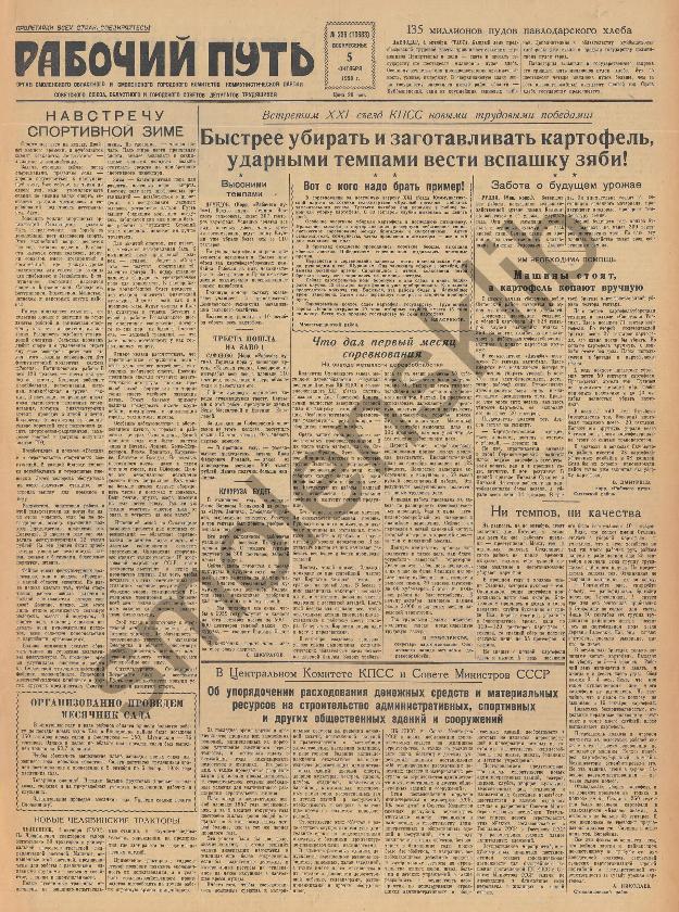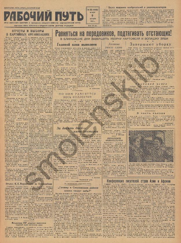 Рабочий путь / Орган Смоленского Областного и Смоленского Городского Комитетов Коммунистической партии Советского Союза, Областного и Городского Советов Депутатов Трудящихся. — Смоленск: тип. им. Смирнова, 1920-____. № 236.