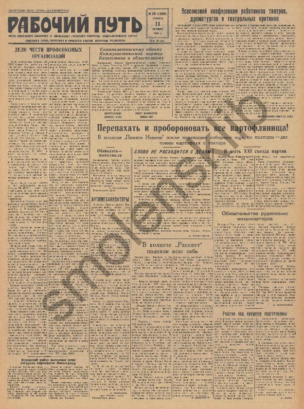 Рабочий путь / Орган Смоленского Областного и Смоленского Городского Комитетов Коммунистической партии Советского Союза, Областного и Городского Советов Депутатов Трудящихся. — Смоленск: тип. им. Смирнова, 1920-____. № 237.