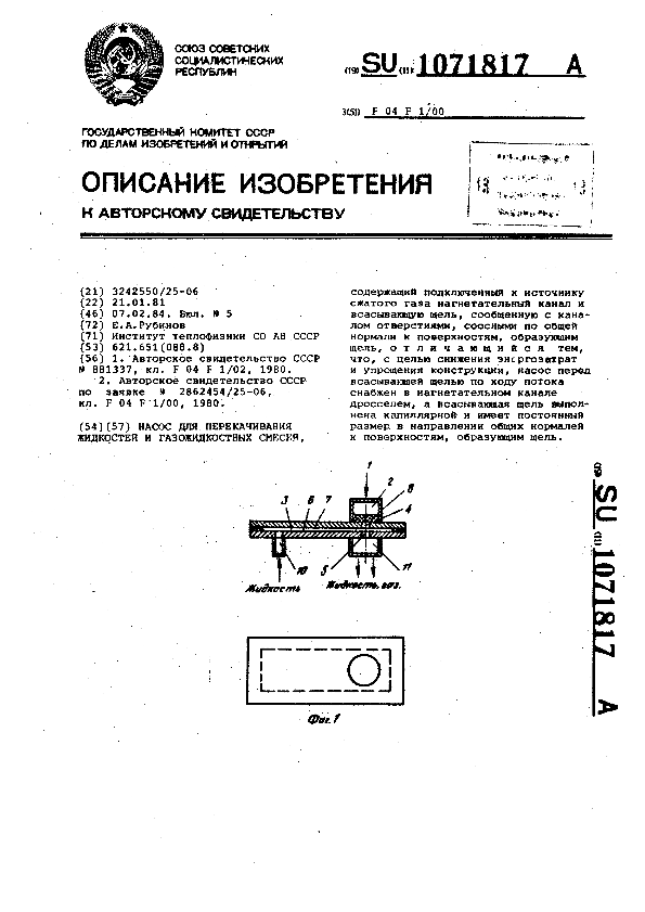 Насос для перекачивания жидкостей и газожидкостных смесей / Рубинов Е. А.; заявитель: Институт теплофизики СО АН СССР // Описания изобретений (ретрофонд) / Комитет по патентам и товарным знакам России. – М. — (Патенты России)., 2003. – 1984, № 1. — Загл. с титул. экрана. — Поисковая система: ИПС MIMOSA GTI. — Систем. требования: Acrobat Reader. — Режим доступа: ftp://smolensklib.ru/bd/patent_ru/pt1071817.pdf. — <URL:ftp://smolensklib.ru/bd/patent_ru/pt1071817.pdf>.