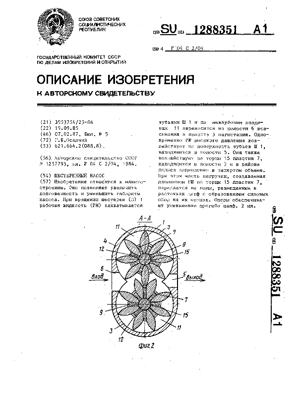 Шестеренный насос / Осадчий Г. Б. // Описания изобретений (ретрофонд) / Комитет по патентам и товарным знакам России. – М., 2003. – 1987, № 1. — (Патенты России). — Загл. с титул. экрана. — Поисковая система: MIMOSA GTI. — Систем. требования: Acrobat Reader. — Режим доступа: ftp://smolensklib.ru/bd/patent_ru/pt1288351.pdf. — <URL:ftp://smolensklib.ru/bd/patent_ru/pt1288351.pdf>.