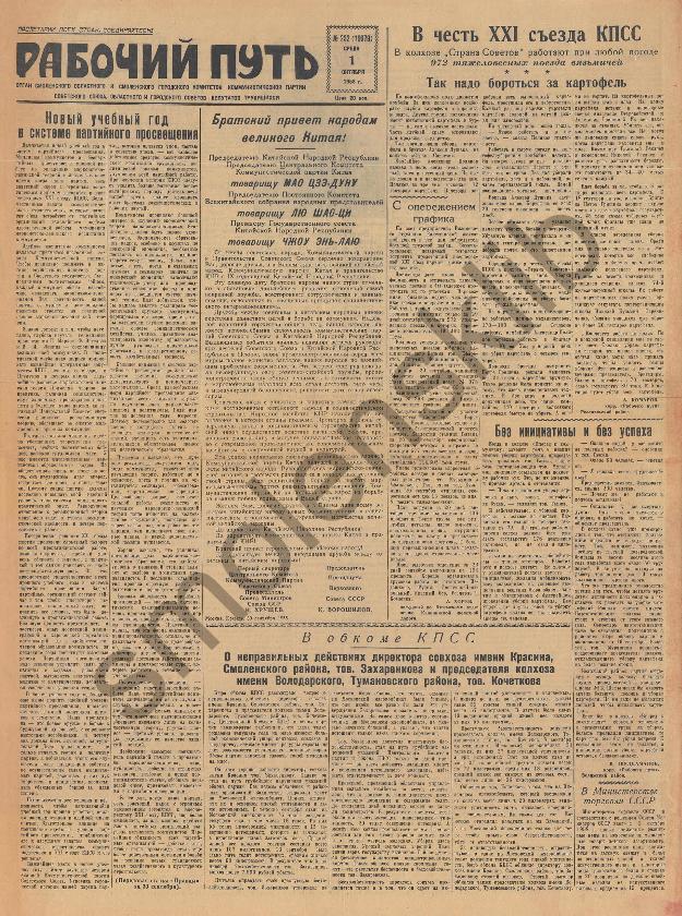 Рабочий путь / Орган Смоленского Областного и Смоленского Городского Комитетов Коммунистической партии Советского Союза, Областного и Городского Советов Депутатов Трудящихся. — Смоленск: тип. им. Смирнова, 1920-____. № 232.