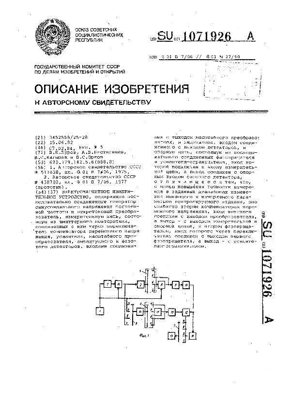 Электромагнитное измерительное устройство / Буров В. Н., Евстигнеев А. Б., Кагырин В. С., Орлов В. С. // Описания изобретений (ретрофонд) / Комитет по патентам и товарным знакам России. – М. — (Патенты России)., 2003. – 1984, № 1. — Загл. с титул. экрана. — Поисковая система: ИПС MIMOSA GTI. — Систем. требования: Acrobat Reader. — Режим доступа: ftp://smolensklib.ru/bd/patent_ru/pt1071926.pdf. — <URL:ftp://smolensklib.ru/bd/patent_ru/pt1071926.pdf>.