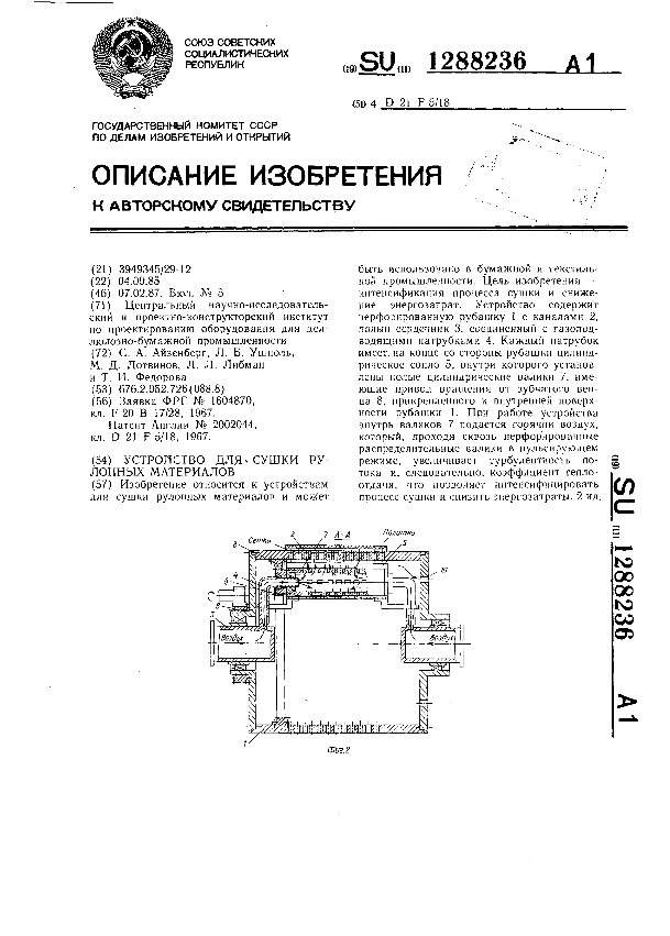Устройство для сушки рулонных материалов / Айзенберг С. А., Ушполь Л. Б., Лотвинов М. Д. [и др.]; заявитель: Центральный научно-исследовательский и проектно-конструкторский институт по проектированию оборудования для целлюлозно-бумажной промышленности // Описания изобретений (ретрофонд) / Комитет по патентам и товарным знакам России. – М., 2003. – 1987, № 1. — (Патенты России). — Загл. с титул. экрана. — Поисковая система: MIMOSA GTI. — Систем. требования: Acrobat Reader. — Режим доступа: ftp://smolensklib.ru/bd/patent_ru/pt1288236.pdf. — <URL:ftp://smolensklib.ru/bd/patent_ru/pt1288236.pdf>.