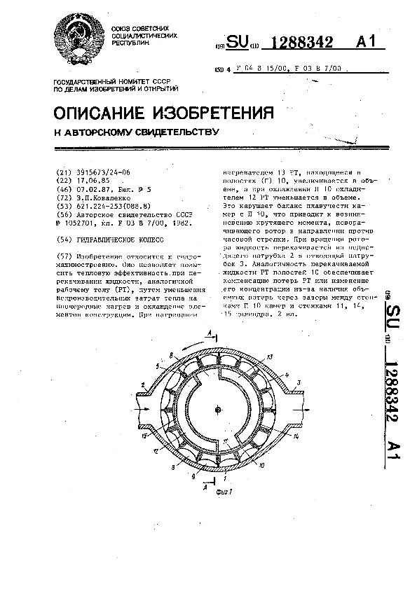 Гидравлическое колесо / Коваленко Э. П. // Описания изобретений (ретрофонд) / Комитет по патентам и товарным знакам России. – М., 2003. – 1987, № 1. — (Патенты России). — Загл. с титул. экрана. — Поисковая система: MIMOSA GTI. — Систем. требования: Acrobat Reader. — Режим доступа: ftp://smolensklib.ru/bd/patent_ru/pt1288342.pdf. — <URL:ftp://smolensklib.ru/bd/patent_ru/pt1288342.pdf>.