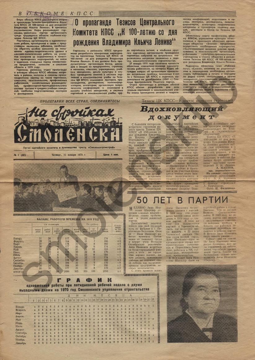 На стройках Смоленска: Орган партийного комитета и руководства треста "Смоленскпромстрой". — Смоленск: Тип. им. Смирнова, 1965-____. № 1.