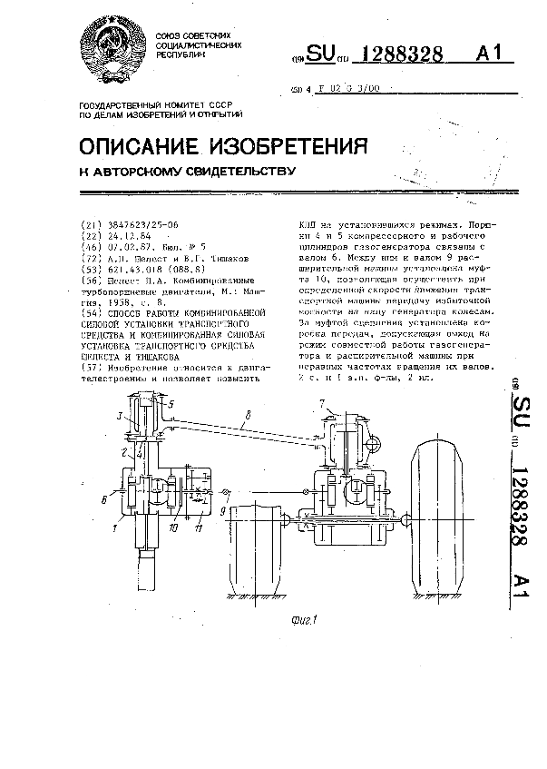 Способ работы комбинированной силовой установки транспортного средства и комбинированная силовая установка транспортного средства Шелеста и Тишакова / Шелест А. П., Тишаков В. Г. // Описания изобретений (ретрофонд) / Комитет по патентам и товарным знакам России. – М., 2003. – 1987, № 1. — (Патенты России). — Загл. с титул. экрана. — Поисковая система: MIMOSA GTI. — Систем. требования: Acrobat Reader. — Режим доступа: ftp://smolensklib.ru/bd/patent_ru/pt1288328.pdf. — <URL:ftp://smolensklib.ru/bd/patent_ru/pt1288328.pdf>.