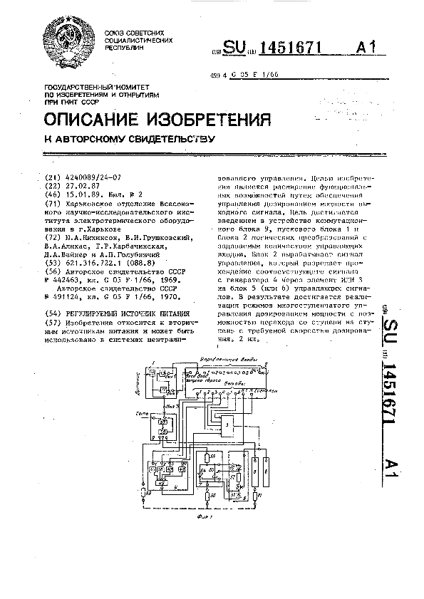 Контролируемое арифметическое устройство / Гоцаков М. В., Головин Ю. В. // Описания изобретений (ретрофонд) / Комитет по патентам и товарным знакам России. – М., 2003. – 1989, № 1. — (Патенты России). — Загл. с титул. экрана. — Поисковая система: ИПС MIMOSA GTI. — Систем. требования: Acrobat Reader. — Режим доступа: ftp://smolensklib.ru/bd/patent_ru/pt1451680.pdf. — <URL:ftp://smolensklib.ru/bd/patent_ru/pt1451680.pdf>.