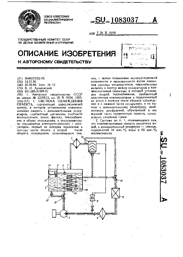 Система охлаждения объекта / Адамовский В. И. // Описания изобретений (ретрофонд) / Комитет по патентам и товарным знакам России. – М. — (Патенты России)., 2003. – 1984, № 1. — Загл. с титул. экрана. — Поисковая система: ИПС MIMOSA GTI. — Систем. требования: Acrobat Reader. — Режим доступа: ftp://smolensklib.ru/bd/patent_ru/pt1083037.pdf. — <URL:ftp://smolensklib.ru/bd/patent_ru/pt1083037.pdf>.