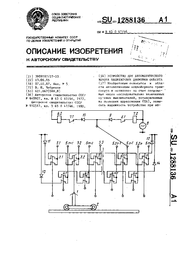 Устройство для автоматического выбора направления движения объекта / Чебряков В. И. // Описания изобретений (ретрофонд) / Комитет по патентам и товарным знакам России. – М., 2003. – 1987, № 1. — (Патенты России). — Загл. с титул. экрана. — Поисковая система: MIMOSA GTI. — Систем. требования: Acrobat Reader. — Режим доступа: ftp://smolensklib.ru/bd/patent_ru/pt1288136.pdf. — <URL:ftp://smolensklib.ru/bd/patent_ru/pt1288136.pdf>.