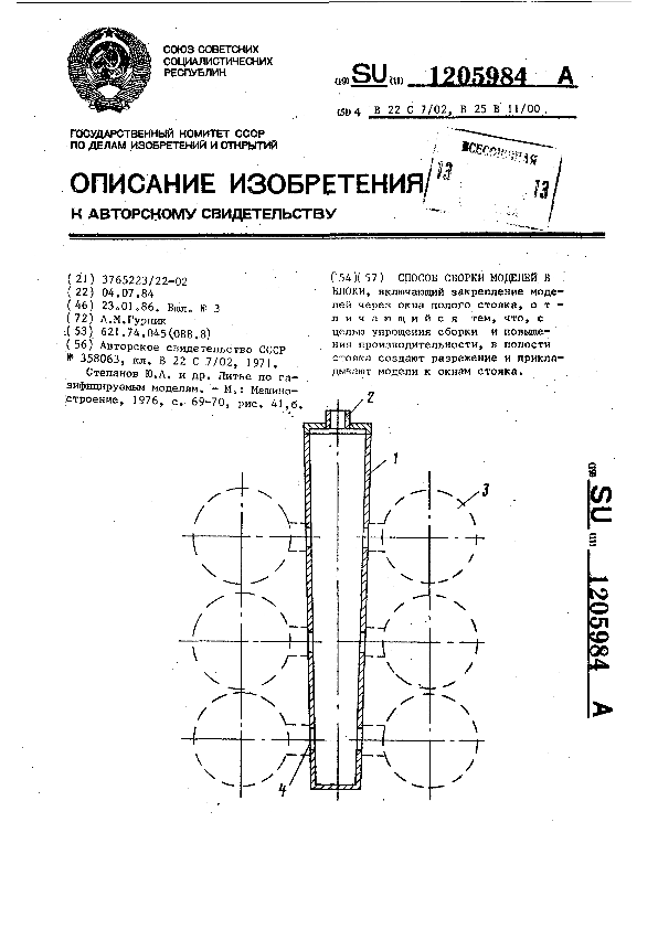 Способ сборки моделей в блоки / Гурник А. М. // Описания изобретений (ретрофонд) / Комитет по патентам и товарным знакам России. – М., 2003. – 1986, № 1. — (Патенты России). — Загл. с титул. экрана. — Поисковая система: ИПС MIMOSA GTI. — Систем. требования: Acrobat Reader. — Режим доступа: ftp://smolensklib.ru/bd/patent_ru/pt1205984.pdf. — <URL:ftp://smolensklib.ru/bd/patent_ru/pt1205984.pdf>.