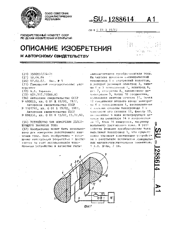Устройство для измерения действующего значения тока / Яцкевич В. А.; заявитель: Гомельский государственный университет // Описания изобретений (ретрофонд) / Комитет по патентам и товарным знакам России. – М., 2003. – 1987, № 1. — (Патенты России). — Загл. с титул. экрана. — Поисковая система: MIMOSA GTI. — Систем. требования: Acrobat Reader. — Режим доступа: ftp://smolensklib.ru/bd/patent_ru/pt1288614.pdf. — <URL:ftp://smolensklib.ru/bd/patent_ru/pt1288614.pdf>.