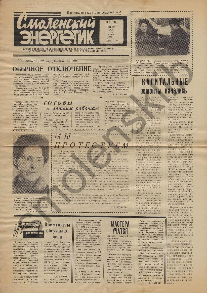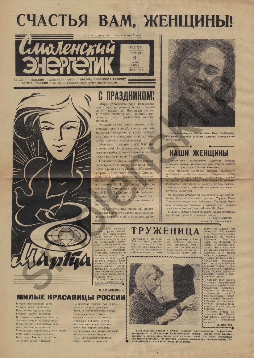 Смоленский энергетик: Орган управления "Смоленскэнерго" и обкома профсоюза рабочих электростанций и электротехнической промышленности. — Смоленск: Смолгортип., 1968-____. № 9.