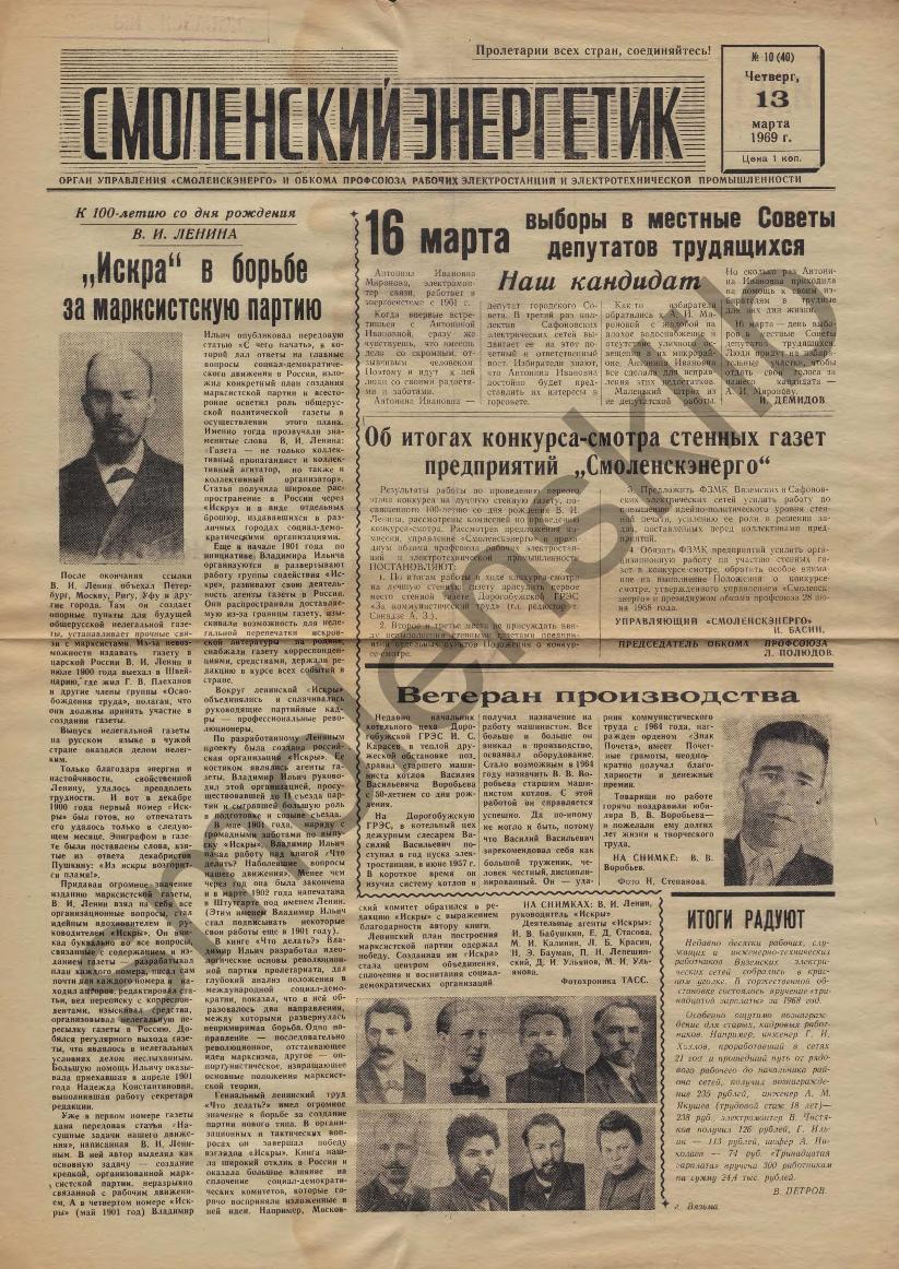 Смоленский энергетик: Орган управления "Смоленскэнерго" и обкома профсоюза рабочих электростанций и электротехнической промышленности. — Смоленск: Смолгортип., 1968-____. № 10.