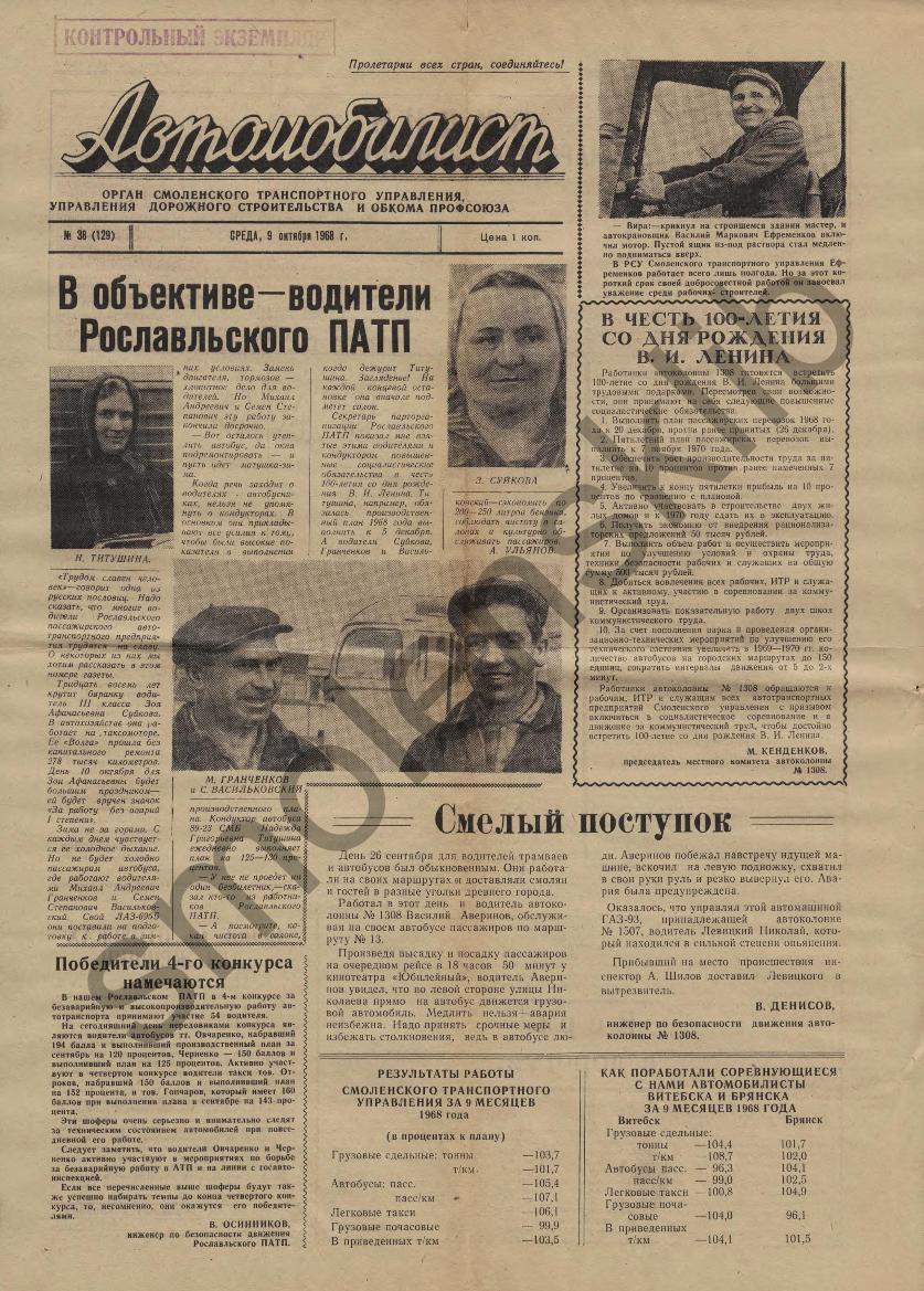 Автомобилист: Орган Смоленского транспортного управления, управления дорожного строительства и Обкома профсоюза. — Смоленск: Смолгортип., 1966-____. № 38.