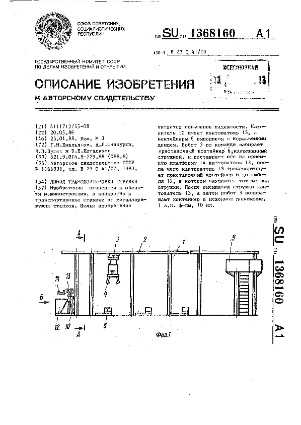 Линия транспортировки стружки / Емельянов Г. М., Шанаурин А. Л., Цушко В. П., Потаскуев В. В. // Описания изобретений (ретрофонд) / Комитет по патентам и товарным знакам России. — М., 1994-____. — (Патенты России). – 1988, № 1. — Загл. с титул. экрана. — Поисковая система: ИПС MIMOSA GTI. — Систем. требования: Acrobat Reader. — Режим доступа: ftp://smolensklib.ru/bd/patent_ru/pt1368160.pdf. — <URL:ftp://smolensklib.ru/bd/patent_ru/pt1368160.pdf>.